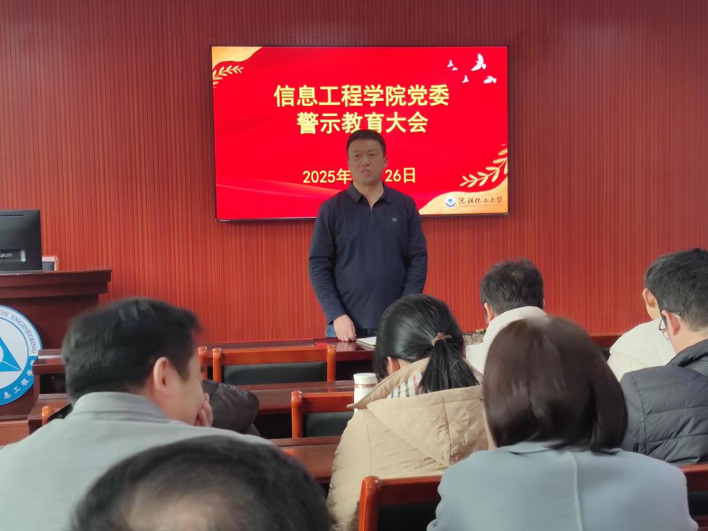11月26日,按照学校的工作部署要求,信息工程学院党委组织召开了警示教育大会,全体教职工参加会议,会议由党委书记梁洪主持。