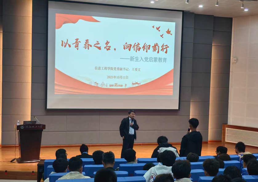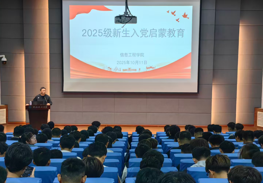 为教育引导新生扣好“思想第一粒扣子”,10月11日,信息工程学院分两场开展2025级新生入党启蒙教育,覆盖全体843名新生,学院党委书记、副书记分别主讲,为新生种下信仰的种子。
