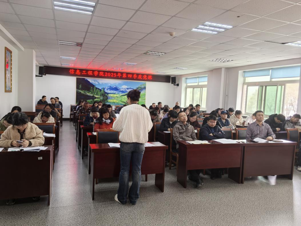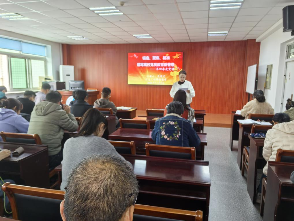 为深入学习贯彻党的创新理论,切实加强领导班子及青年党员思想建设,11月5日,信息工程学院党委召开第四季度领导班子上党课。学院副院长孔晓光以“锚定、聚焦、精准 谱写高校党员教育新答卷”为题主讲,全体教职工参会。